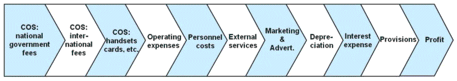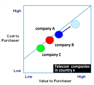 The diagram on the right shows the value line for the 3 companiesThe diagram below shows the telecoms provider value chain analysis |